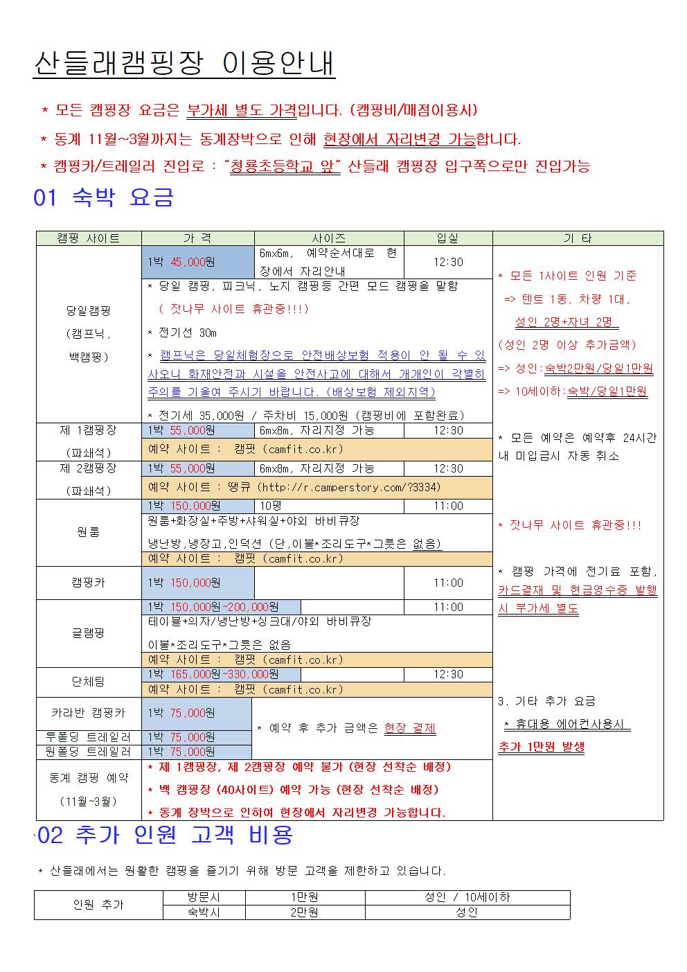 캠핑장 예약하기(제1캠핑장+단체팀+원룸)